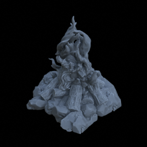 Bestehend aus einem Feuer mit Steinen und einmal ohne (aus klarem Resin gedruckt)