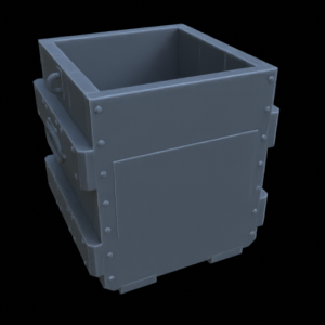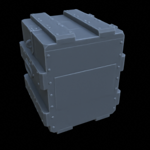 Bestehend aus einer geschlossenen Kiste und einer geöffneten Kiste